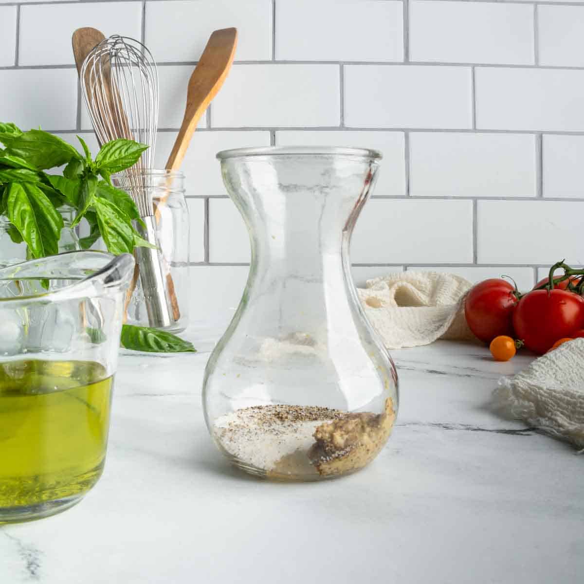 This dressing recipe is one of our favorite easy go-to's. A half batch of our white balsamic dressing recipe is plenty for this salad but we recommend making a full batch and keeping the rest in the fridge for other salads and veggies.